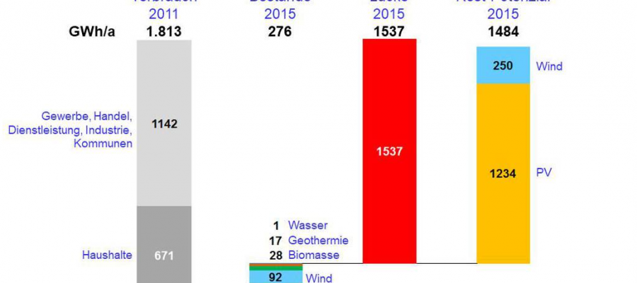 Doch zunächst erläuterte der ISE e.V.-Vorsitzende den Stand der Energiewende 2016: Bei der Stromerzeugung können wir in Deutschland ca. 1/3 unseres Bedarfs mit Regenerativen decken. In der Südpfalz sind es nur 15 %. Mit dem Bestand und dem Potenzial dass wir hier in unserer Region haben, könnten wir uns jedoch fast alleine „ernähren“ (siehe Bilder).