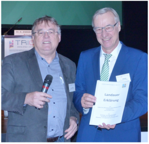 Vertreter des gemeinnützigen Vereins haben das erarbeitete Papier an Politiker von RLP und der (Süd-)Pfalz übergeben. Alle angesprochenen Politiker haben zugesagt, die Maßnahmen der Landauer Erklärung in ihren Gremien zu beraten und dabei die Expertise der ISE e.V.-Experten hinzu zu ziehen.