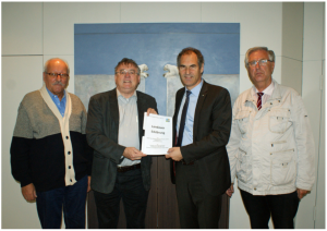v.l.: MIchael Linder, ISE e.V.-Experte; Wolfgang Thiel; Dietmar Seefeldt, Landrat SÜW; Prof. Karl Keilen, ISE e.V.-Experte