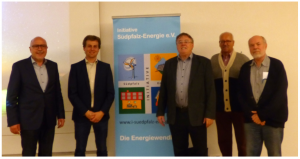 v.l.: Wolfgang Thiel; Sascha Rachow, Klimaschutzmanager GER; Dr. Fritz Brechtel, Landrat GER; Jutta Wegmann, Kreisbeigeordnete GER; Dr. Gerhard Lausterer, ISE e.V.-Experte