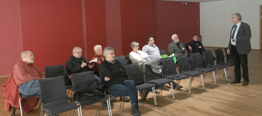 Schwerpunkt des Vortrages war die Erläuterung des hierarchischen Prozesses von der UN über die EU, die BRD, die Bundesländer, die Landkreise bis hin zu den VGs. Hier wurde klar, dass nur durch die koordinierten Beiträge und das abgestimmte Zusammenspiel aller Ebenen, einschließlich der Wirtschaft und der Verbände, die Ziele des Klimaschutzes und der Energiewende zu schaffen sind!