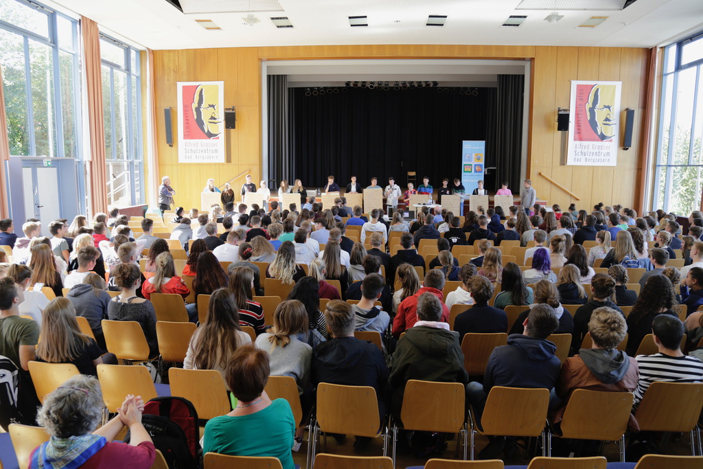 Im Rahmen ihrer Jugend-Offensive hat ISE e.V. gemeinsam mit dem Gymnasium Bad Bergzabern am 20.09.2019, zeitgleich mit dem weltweiten Klimastreik, einen Klima-Aktionstag mit den Klassen 9-11 veranstaltet. Fast 400 Schülerinnen und Schüler sowie das anwesende Lehrerkollegium verfolgten mit großem Interesse dem Impulsvortrag „Bis 2040: Raus aus den fossilen und 100% Erneuerbare“ (siehe PPT-Präsentation). Wolfgang Thiel und Dr. Gerhard Lausterer von ISE e.V. informierten die Zuhörer mit den Schlüsselthemen: Bedrohung durch den Klimawandel, Ziele und Maßnahmen zum Klimaschutz für Deutschland. Diese „Lektion“ hat sowohl bei den SchülerInnen als auch bei den LehrerInnen und dem Oberstudiendirektor Peter Allmann tiefen Eindruck hinterlassen.