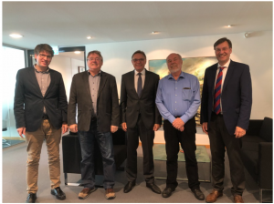 Hans Beckmann, Staatssekretär, Bernhard Bremm, Leiter Gymnasialabteilung und Jan-Hendrik Winter, Referat Grundsatzfragen und Lehrpläne, berichteten umfassend über die Bildungssituation zum Klimaschutz. „Wir waren beeindruckt, wie präsent Klimaschutz und verwandte Themen bereits heute in den Lehrplänen und Projekten in der Bildungslandschaft von RLP implementiert sind“ sagte Wolfgang Thiel, Vorsitzender von ISE e.V..
