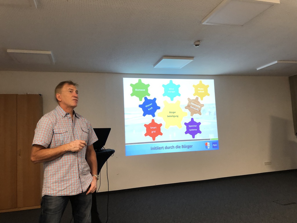 Ein großer Dank geht an Günter Mögele, 2. Bürgermeister, der uns einen ganzen Tag mit Informationen „gefüttert“ hat, sowohl mit einem sehr interessanten Vortag, als auch mit der Besichtigung von Objekten (Wind, PV, Biomasse, BHKW und Smart Grid).