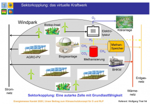 Von ISE e.V. kam der Vorschlag, die vorhandene Fläche des Windparks synergetisch für weitere Erneuerbare wie AGRO-PV und Biogas zu nutzen. EnBw und die VG-Kandel werden sich die Vorschläge für ein virtuelles Kraftwerk anschauen (siehe Bild).