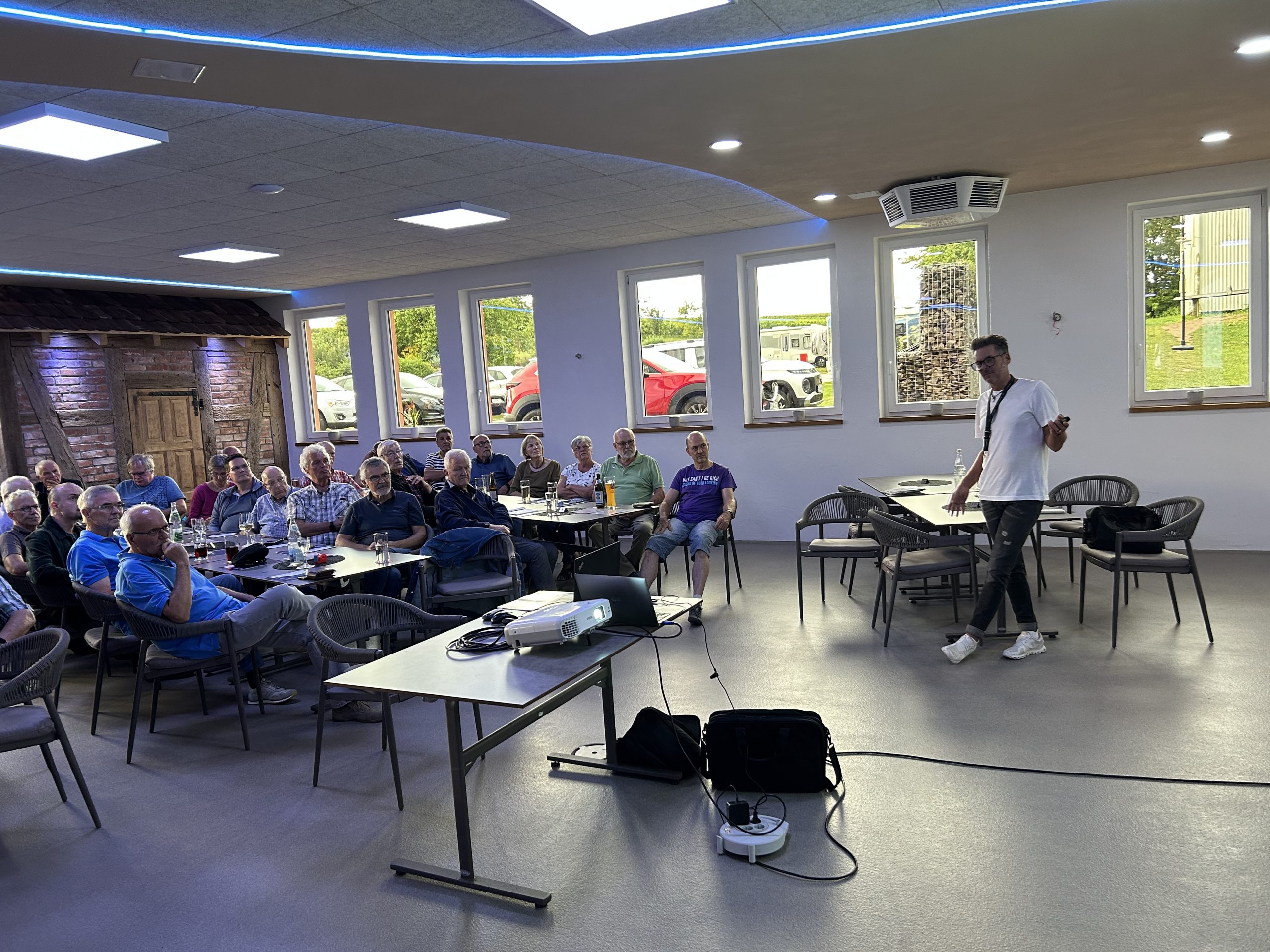 Klaus Hensen, Gebietsmanager von FENICON, informierte uns am 28.08.2025 in Dierbach darüber mit welchen Konzepten und Produkten sein Unternehmen die spezifischen Problemstellungen der Kunden beantwortet werden. Schwerpunkt seines Vortages waren Lösungen für die KMUs. Er hatte sich per Internet in eine konkrete Anlage eingewählt, um uns dabei die Vorteile des Energiemanagement-systems aufzuzeigen.