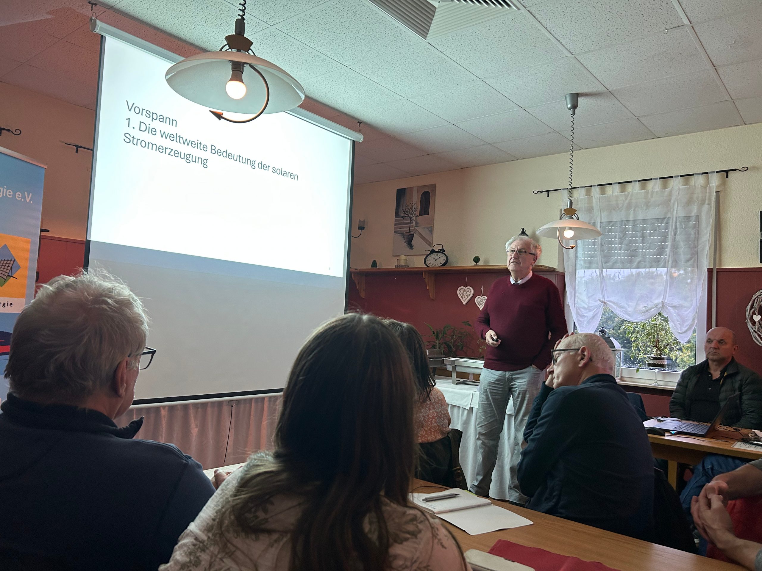 „Mit dem ProSumer (Stromproduzent und -konsument) können sich Hausbesitzer den Wunsch erfüllen, sich möglichst selbst mit ihrem eigenen Hauskraftwerk zu versorgen und darüber hinaus Wärme und Mobilität einzubeziehen. Flexibilisierung und Inselbetrieb sind die nächsten Ausbaustufen“, so Wolfgang Thiel, Vorsitzender von ISE e.V., der am 23.10.2025 ca. 60 interessierte Bürgerienn und Bürger in Gleiszellen zum Oktober-EnergiewendeForum begrüßen konnte.