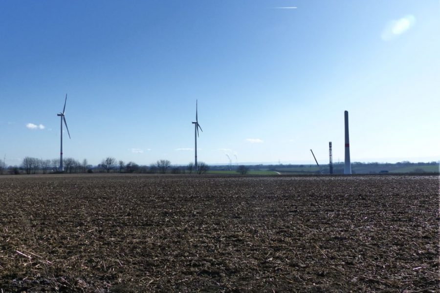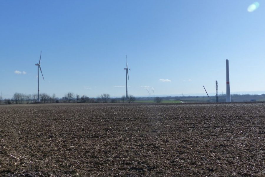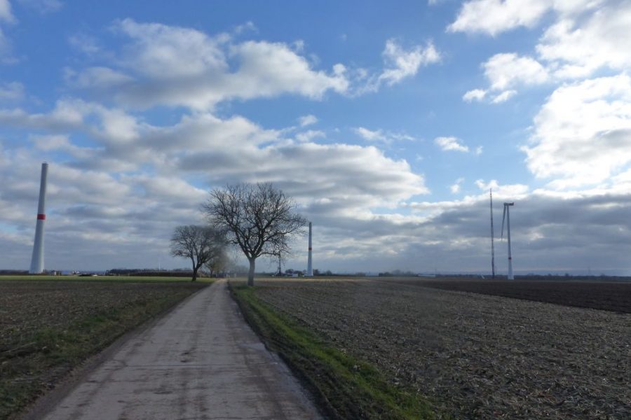 schon von weitem sieht man die beiden ersten Windräder (FRF03 und FRF06) des Windparks Freckenfeld seit 31.01.2018 laufen. Ein gutes Bild für die Energiewende.