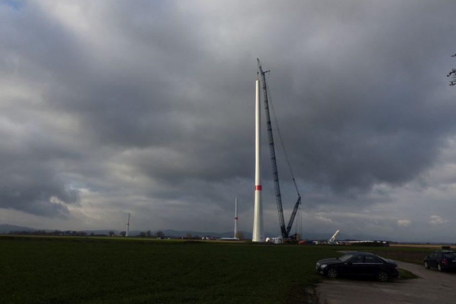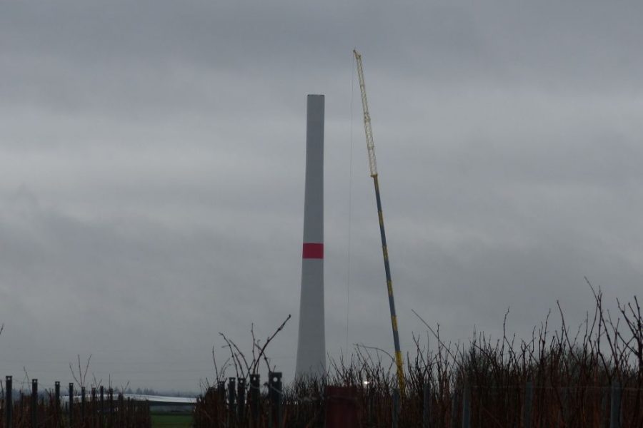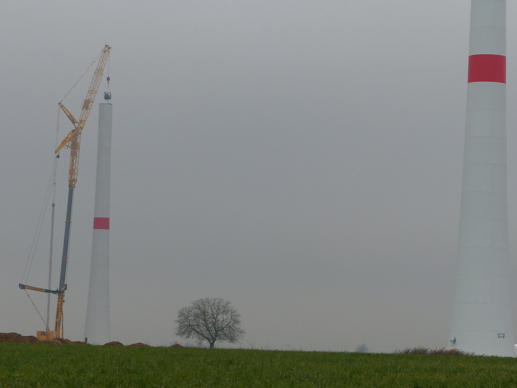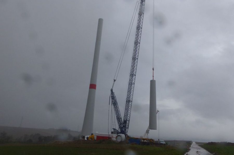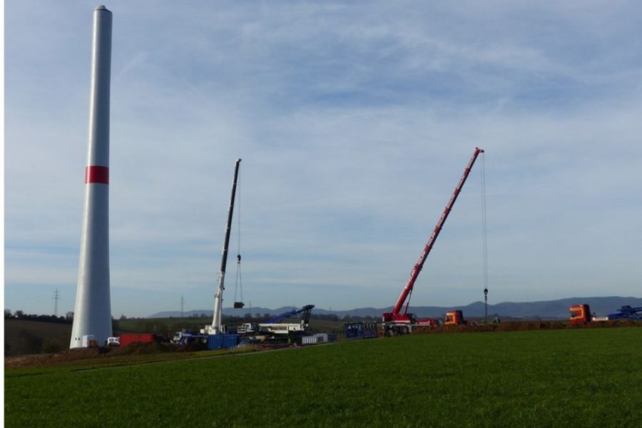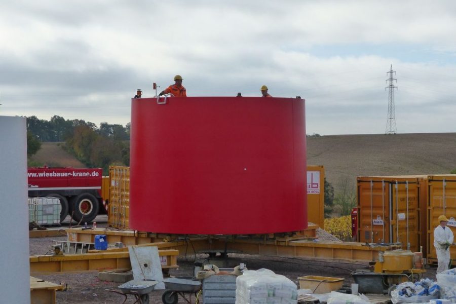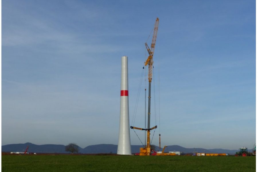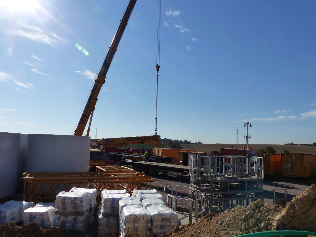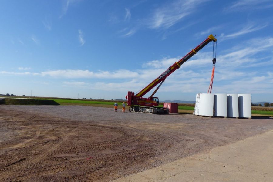 Beim FRF04, das zeitlich letzte im Bau befindliche Windrad, beginnt der Aufbau des Turms.