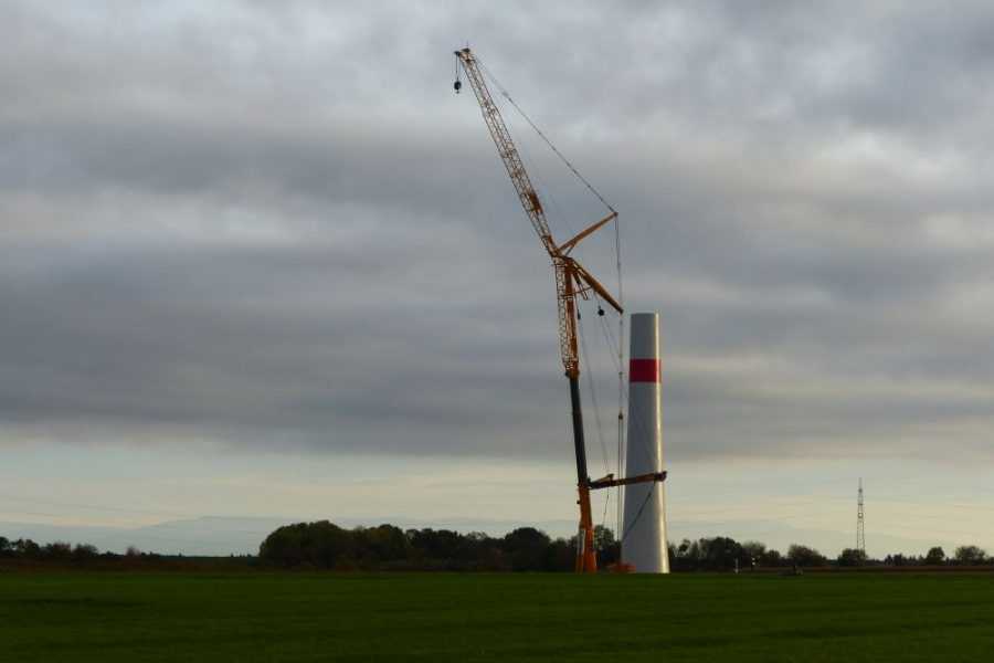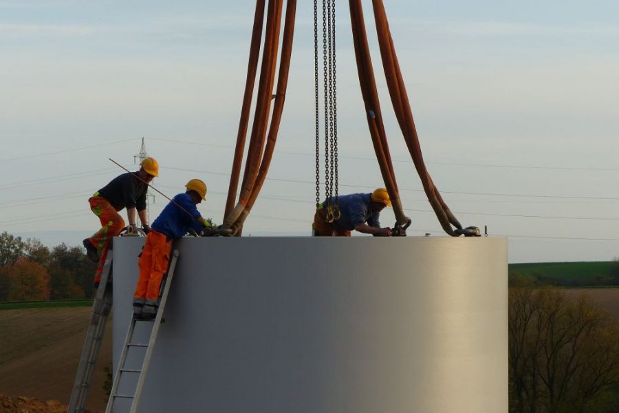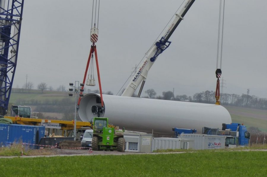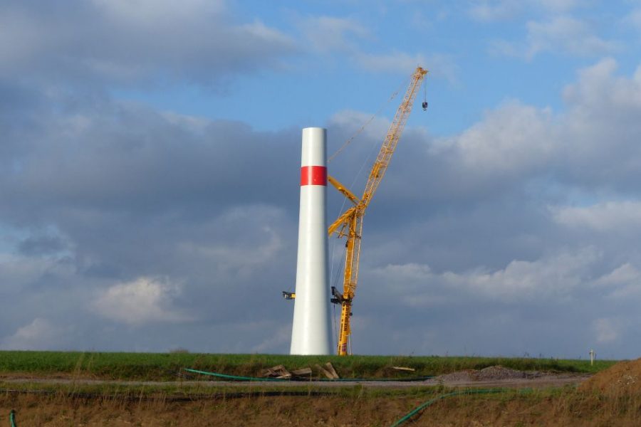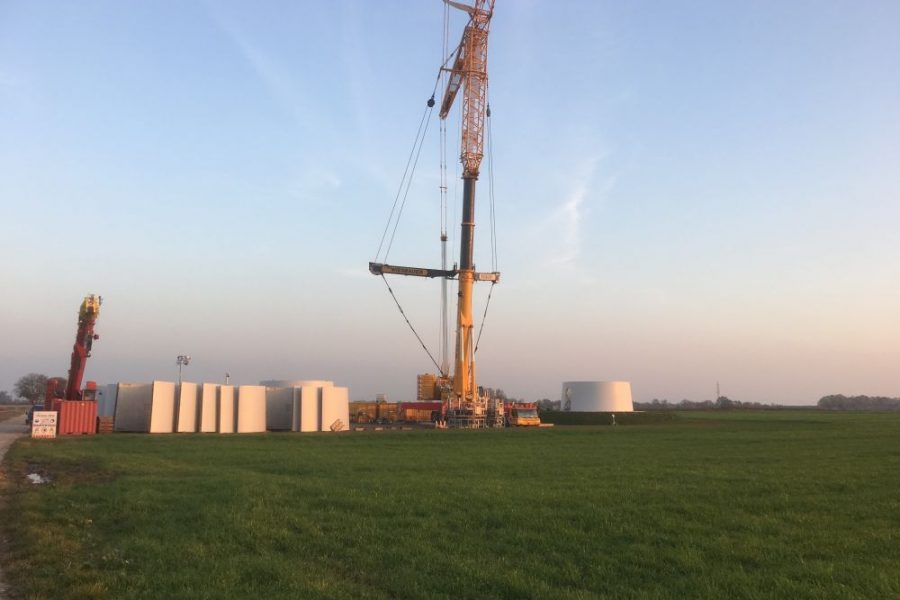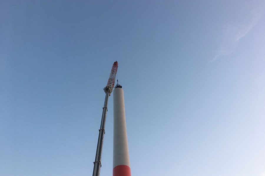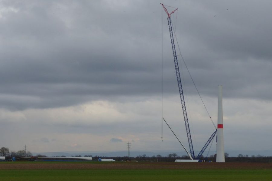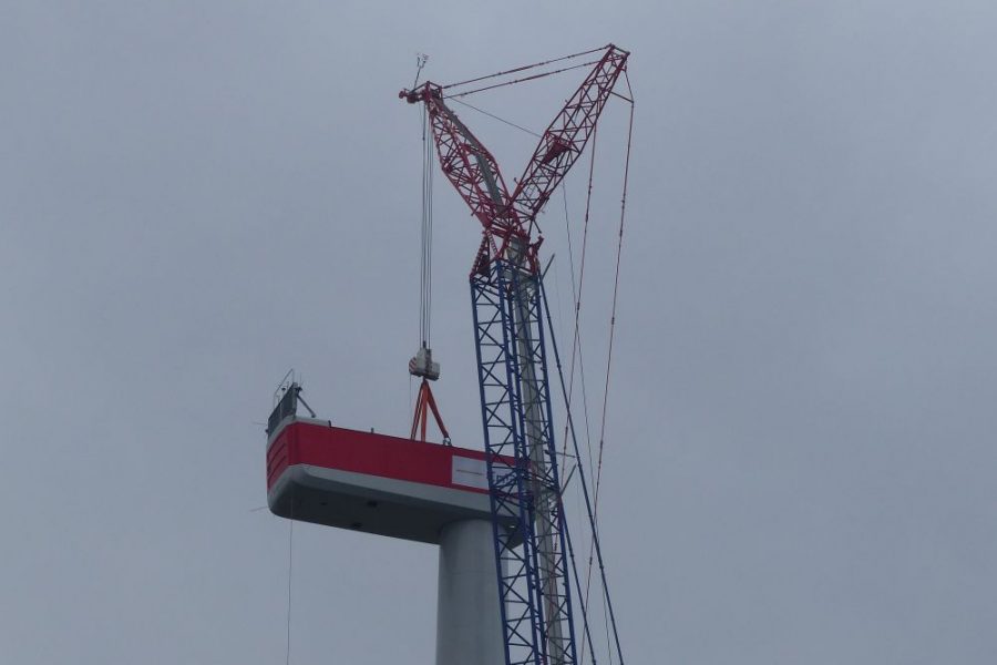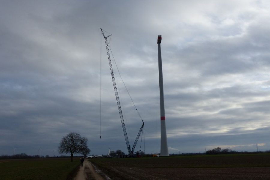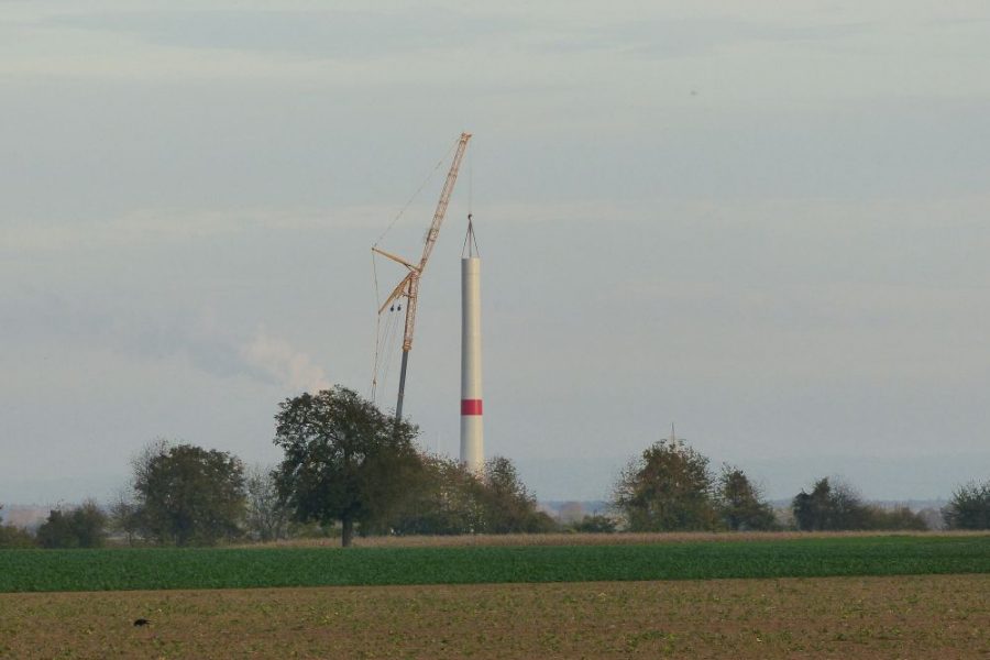 Beim FRF04, das zeitlich letzte im Bau befindliche Windrad, beginnt der Aufbau des Turms.