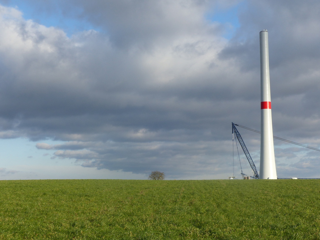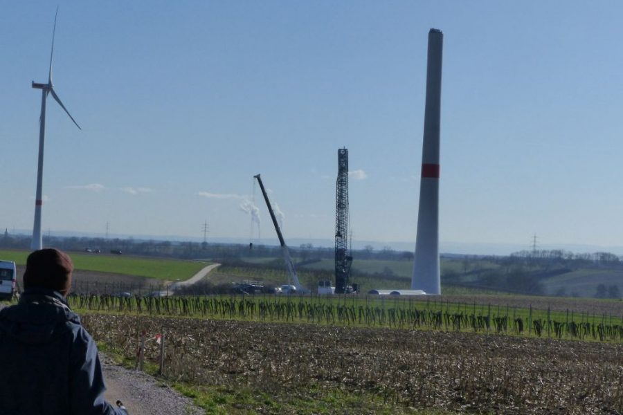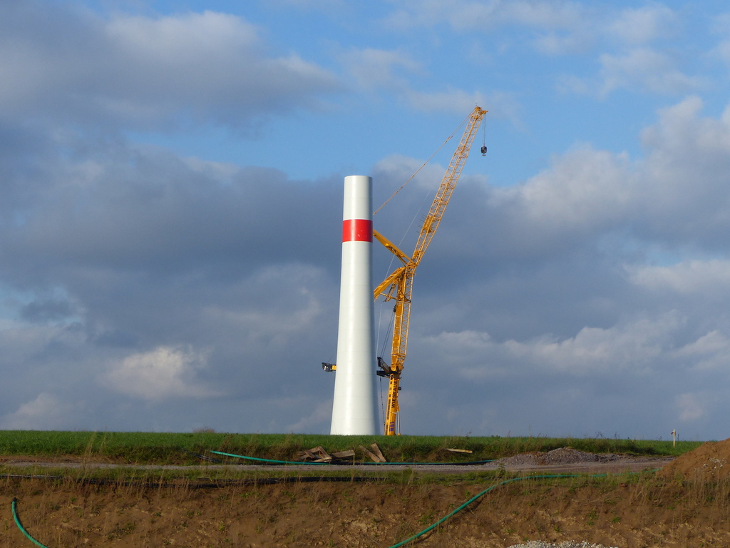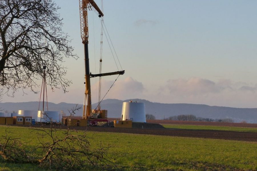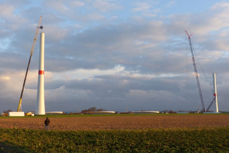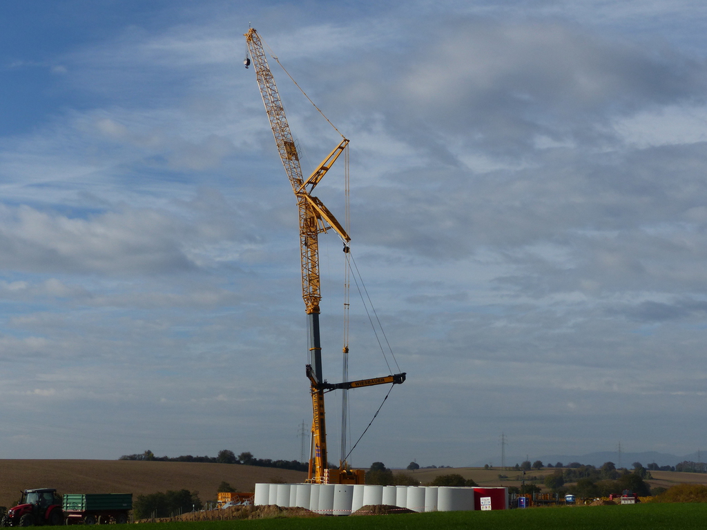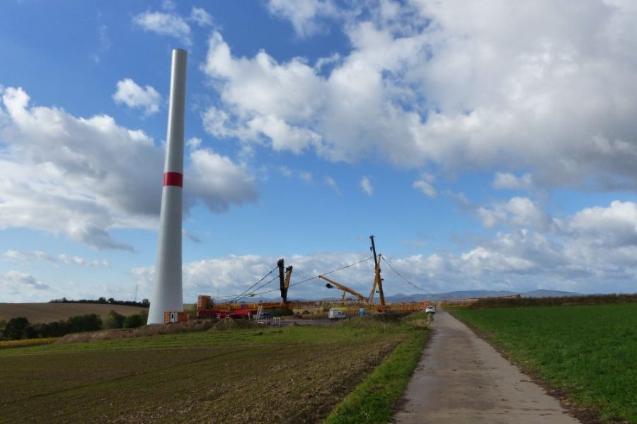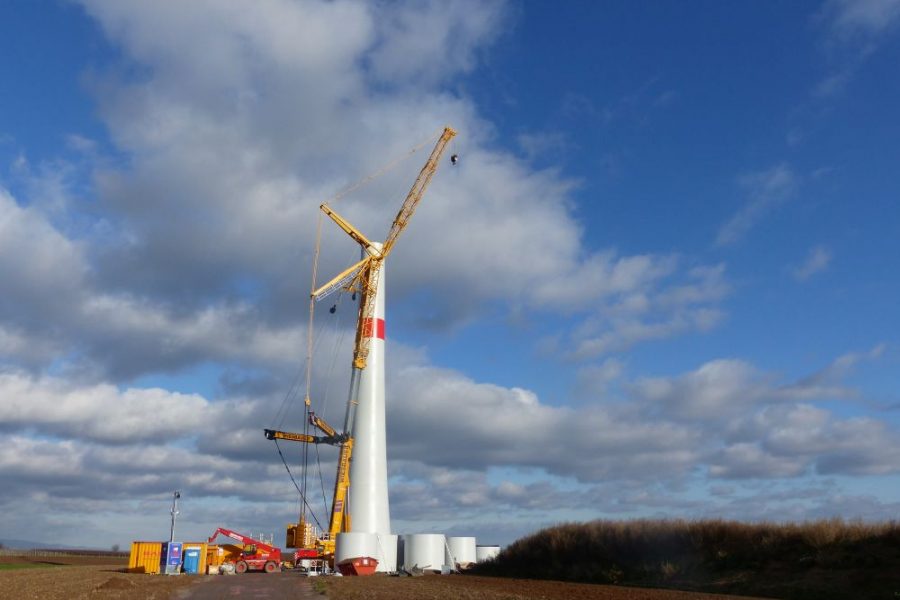 Beim FRF04, das zeitlich letzte im Bau befindliche Windrad, beginnt der Aufbau des Turms.