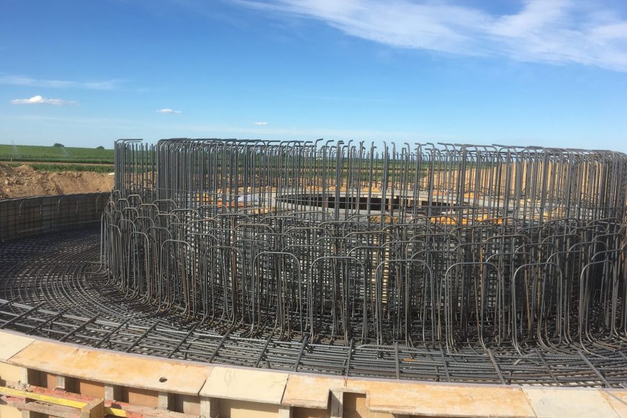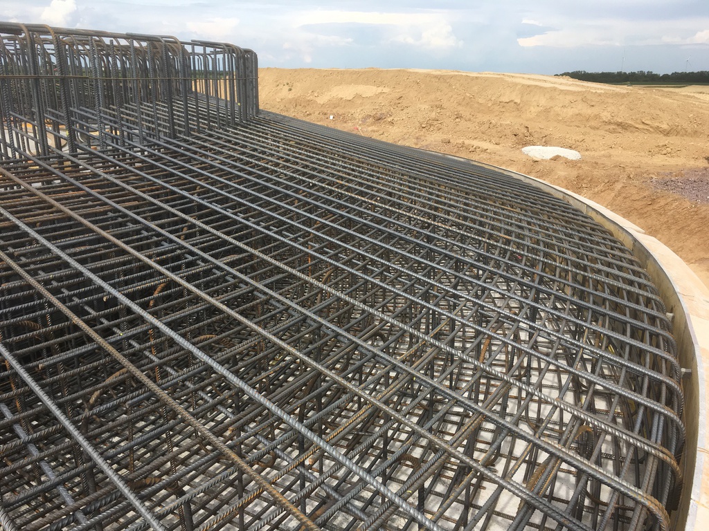 21.06.2017: Mit der Bewehrung des Fundamentes wird begonnen, hier beim FRF02