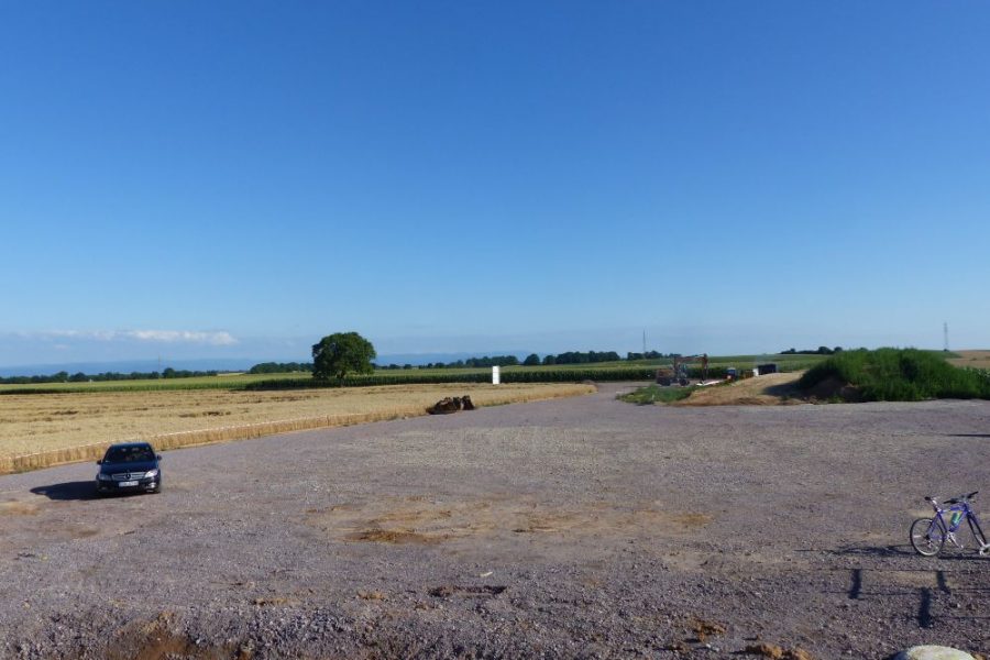 Es gibt noch etwas zu vermelden: Radfahrer, Wanderer, Jogger und Walker, die schon mal den Firstweg (oder Bad Bergzaberner Höhenweg, wie er offiziell heißt) benutzt haben, wissen, dass es von dort eine wunderschöne Sicht zum Schwarzwald und Pfälzerwald gibt. Deshalb habe ich bei der EnBW-Projektleitung angeregt, auf einem Aushubhügel eine Sitzgarnitur zum Vespern, „Gugge“ und „Babbele“ mit Info-Tafel zum Windpark und evtl. zur Region aufzustellen. Die Chancen dazu stehen nicht schlecht.
