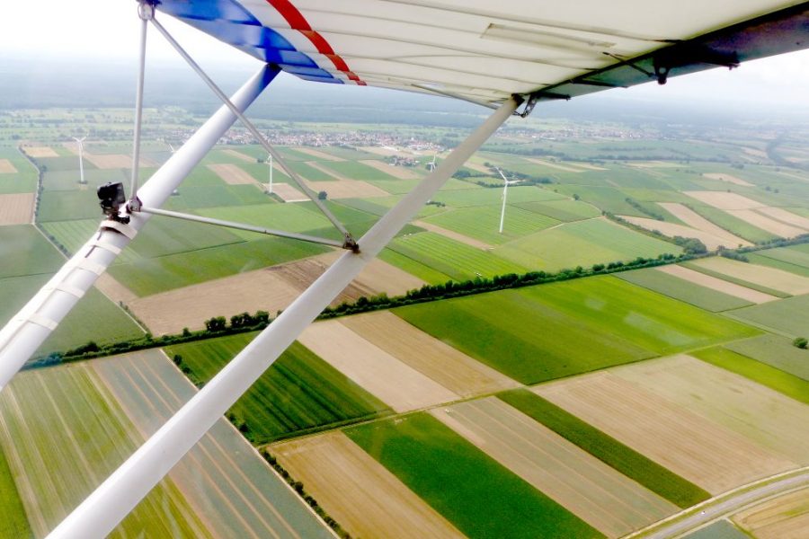 Bei meinem heutigen Rundflug vom Flugplatz Schweighofen, habe ich mir die Windkraftanlage Freckenfeld mal aus der Luft angeschaut. Man erkennt die fertig gestellten Fundamente sehr gut als weiße Flecken. Noch ist die Anlage nicht so markant, wie die Anlage in Minfeld. Aber gut Ding braucht Weile. Ende des Jahres werde ich nochmals über den dann stromliefernden Windpark fliegen.
