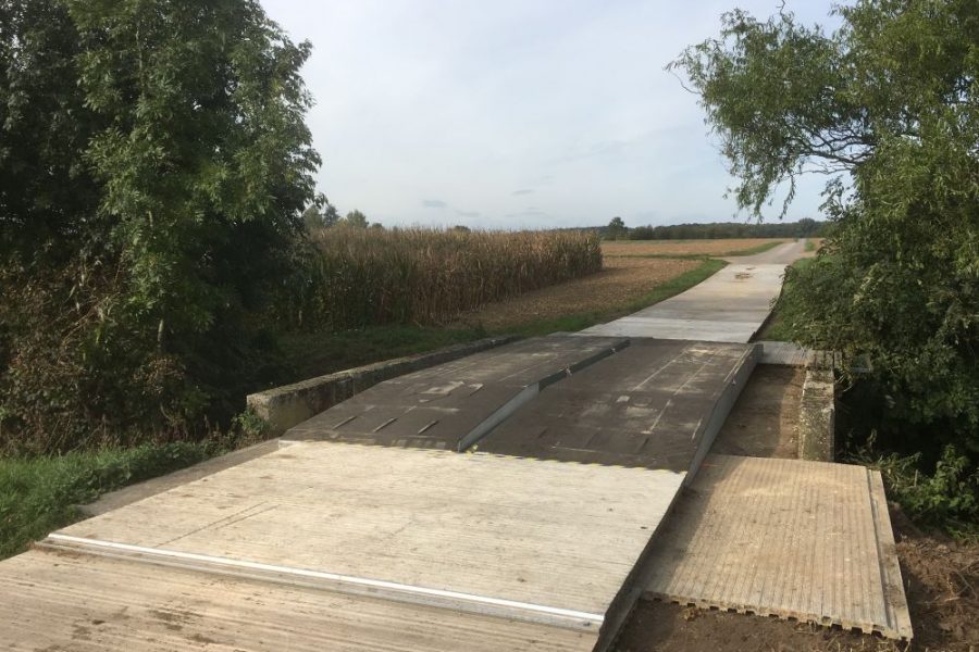 Nun ist es endlich soweit! Der provisorische Bahnübergang ist fertiggestellt und die Erlenbachbrücke ist für schwere Lasten präpariert. Ab 04.10.2017 kommen die Teile für die Windräder.
