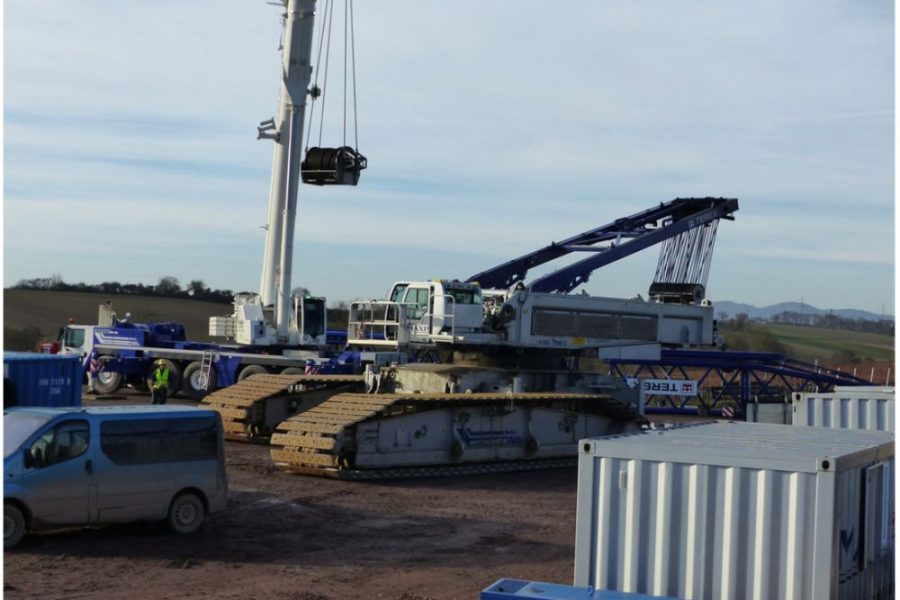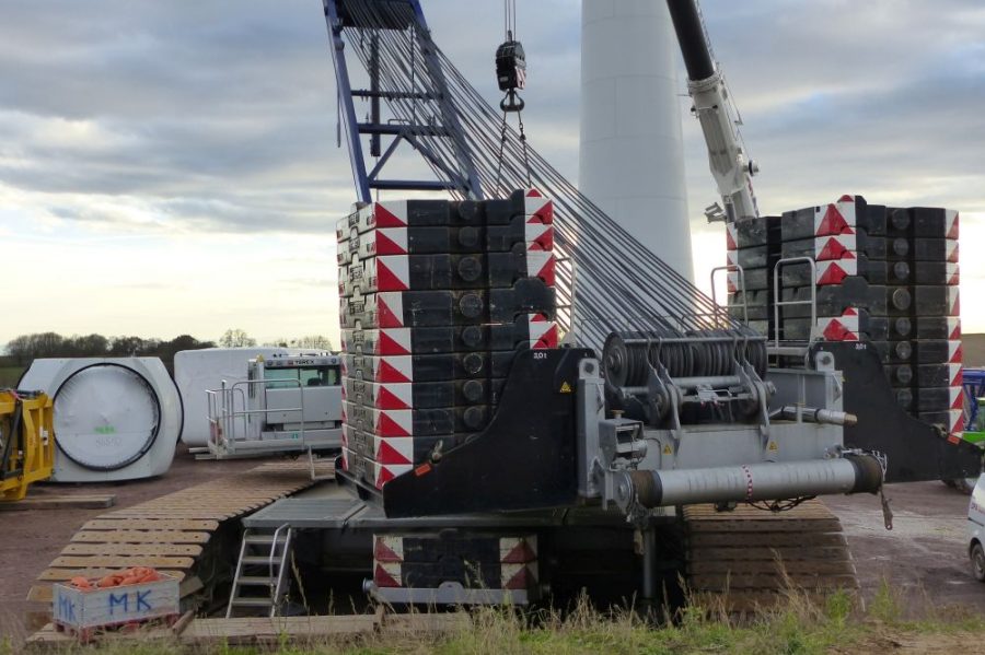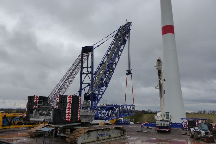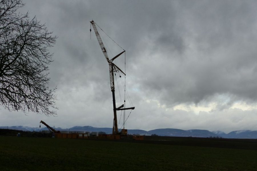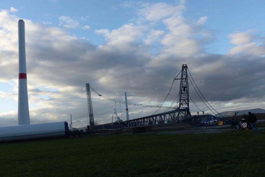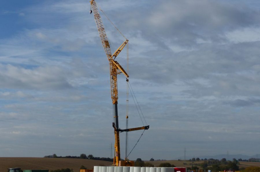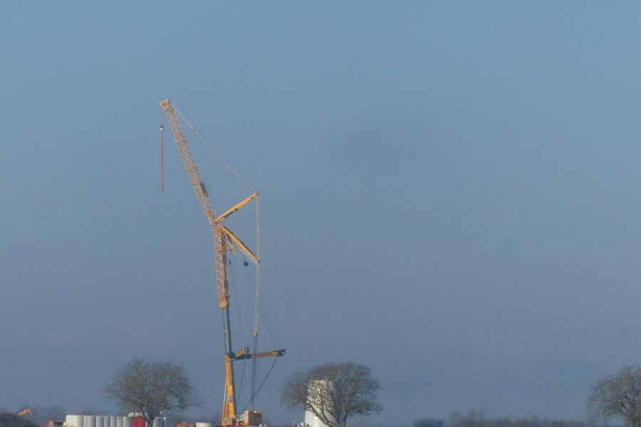 Der Schwerlastkran für die Betonteile des Hybridturms wurde zum Windrad FRF02 umgestellt. Die Montage beginnt dann am 27.11.2017.