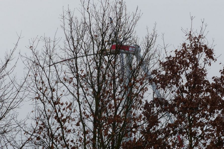 ie Baustellenleitung hatte frühzeitig vor Beginn des Orkantiefs „Friederike“ entsprechende Vorkehrungen getroffen und die beiden großen Montagekräne umgelegt. Bei Orkanböen von mehr als 120 km/h war dies, zur Abwehr von Schäden, eine richtige Entscheidung! Klar, dass sich dadurch wieder 10 Tage Terminverzug angehäuft haben.