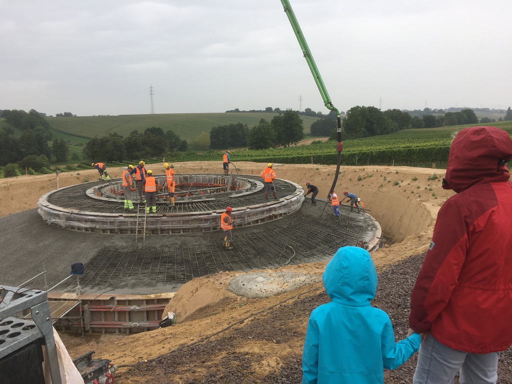 Am 08.08.2017 wurde das letzte Fundament betoniert. Wie immer gibt es viele Interessierte, selbst jüngste Energiewendler sind dabei.