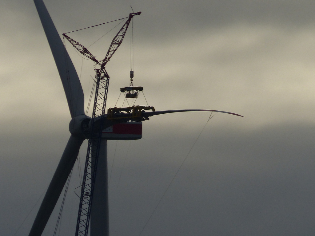 16.12.2017 Das 2. Rotorblatt wird montiert